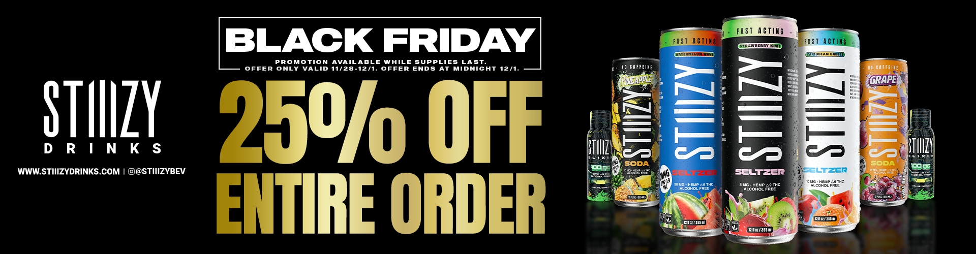 “Best flavors out of all the thc drinks i tried, and i've tried plenty! No weedy after taste and the right amount of sweet. Takes 2 seltzers for me to get me in the right vibe. Just ordered the elixir, can't wait! Thanks stiizy!”